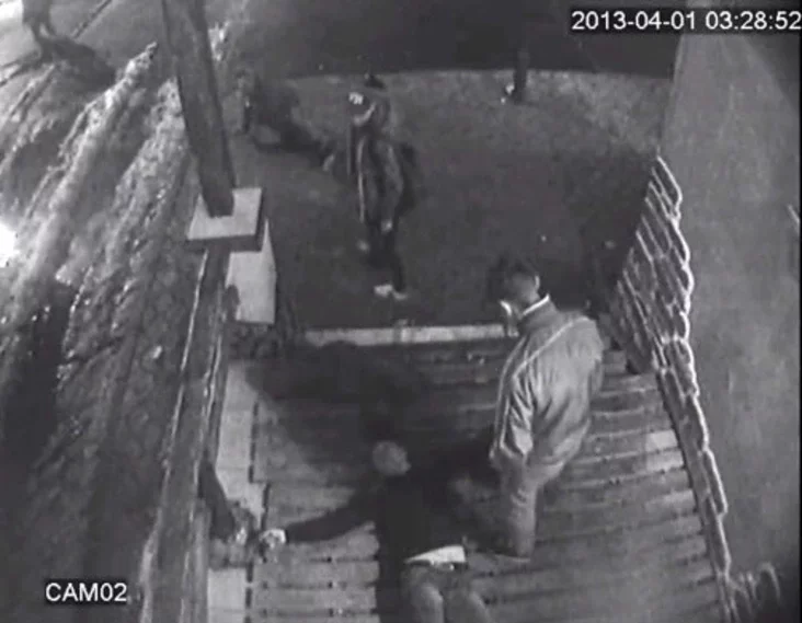 Скончыўшы разборку, кампанія з'ехала на таксі, пакінуўшы пацярпелага ляжаць на ганку без прытомнасці.