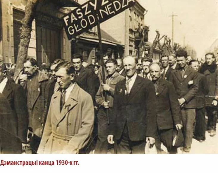 Што тут і казаць, бачым толькі тое, што хочам бачыць. Бо здымак першамайскай народнафронтаўскай дэманстрацыі 1936 года ў «Гродназнаўстве» акурат змешчаны на старонцы 238. Праўда не той, які бачыў у Другім томе Энцыклапедыі гісторыі Беларусі сп. Гігін, а зроблены крыху з іншага ракурса, метраў сто далей ад папярэдняга здымка. Ён без нумароў апазнаных паліцыяй удзельнікаў, якіх пасля рэпрэсавалі польскія ўлады, але затое ўнікальны, бо ўкладальнікі «Гродназнаўства» друкавалі пераважна невядомыя выявы. Вадзіму Францавічу ж хацелася падкрэсліць як палякі душылі беларусаў і як удала пасля іх вызвалілі ў