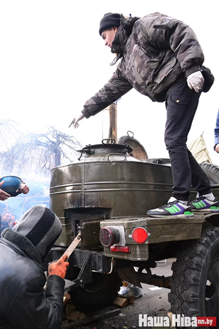 «Каля ста чалавек запячаталі выезды з базы ўласнымі легкавікамі. Сярод мужчын пабачыў і некалькі жанчын, настроеных не менш рашуча», — напісаў у Facebook-у дэпутат Вярхоўнай Рады ад апазіцыйнай «Бацькаўшчыны» Андрэй Пышны.