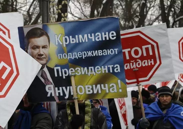 Крым у цэлым уяўляе сабой больш складаную мазаіку. Доля рускіх у насельніцтве там меншая (58%). Яшчэ 25% складаюць украінцы, якія пераважаюць у вёсках, а 12% — крымскія татары, згуртаваная супольнасць, якая традыцыйна падтрымлівае ўкраінскія нацыянал-дэмакратычныя партыі. Акрамя таго, крымскія эліты цесна звязаныя з Кіевам эканамічна.