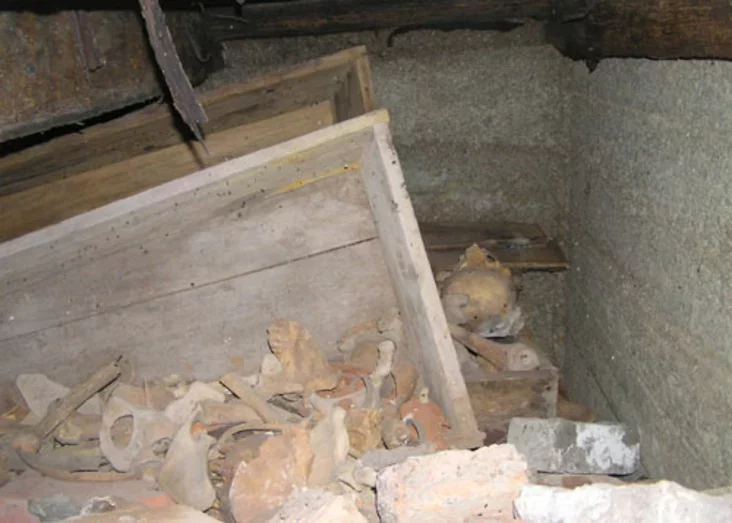 Касьцёл стаіць зачыненым, але не для вандалаў. Час ад часу сюды наведваюцца аматары пагуляць з чалавечымі косткамі. Маладэчанскі актывіст Генадзь Фарына, зь якім мы прыехалі ў Беніцу, кажа, што раней чарапоў было больш. Разрабаваны склеп быў нанава закладзены цэглай у 2003‑м, аднак злачынцы ізноў разбурылі кладку і павыкідалі косткі. Па словах Генадзя, ў падвале бачныя сьляды нядаўніх наведвальнікаў. Амаль немагчыма знайсьці рэшткі мармуровых і гранітных надмагільных плітаў, некаторыя чэрапы раструшчаныя на кавалкі. І зусім немагчыма зараз зразумець, дзе рэшткі шкілетаў Швыкоўскіх, а дзе Коцелаў. Такі жудасны стан магілы ня вельмі зьмяніўся і пасьля сыходу «саветаў». Косткі, прыбраныя намі ў «брацкую магілу», могуць быць ізноў патрывожаныя ў бліжэйшым часе. Таму неабыякавыя людзі вырашылі падаць заяву ў пракуратуру. Як кажа Генадзь, «трэба ўзбудзіць крымінальныя справы па двух артыкулах: нанясеньне шкоды помніку архітэктуры і апаганьваньне могілак».