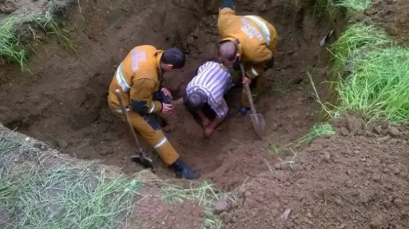 Пра абрушэнне грунту ў траншэі цеплатрасы насупраць дома 5 па вуліцы Берута выратавальнікі даведаліся ад медыкаў Гарадской станцыі хуткай медыцынскай дапамогі.