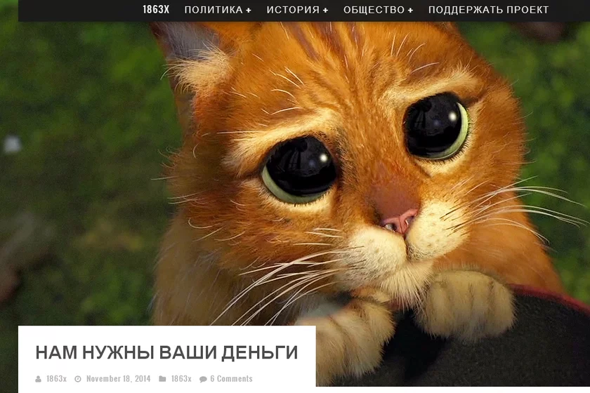 «К сожалению, проект 1863x.com показывает свои возможности только на 10-20% в лучшем случае. Большинство статей и текстов пишутся урывками между работой и кучей бытовых дел. Редакция готова уволиться со своих трех работ и полностью отдаться вам, дорогие читатели, при этом не рассчитывая на высокую зарплату. Мы готовы кушать меньше, но работать больше для общего блага. Больше статей, больше скандалов, интриг и расследований. У нас есть сотни разнообразных идей, которые мы хотим реализовать.