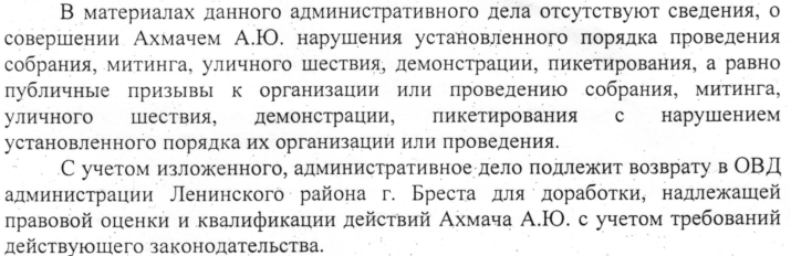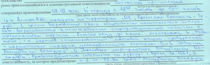 Аляксандр зноў упісаў, што не згодны. Але на мінулым тыдні атрымаў позву ў суд. Ахмачу пагражае штраф альбо суткі.