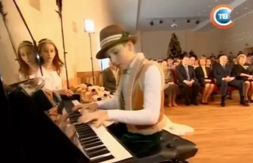 Коля Лукашэнка, малодшы сын кіраўніка дзяржавы, прадэманстраваў ігру на піяніна.