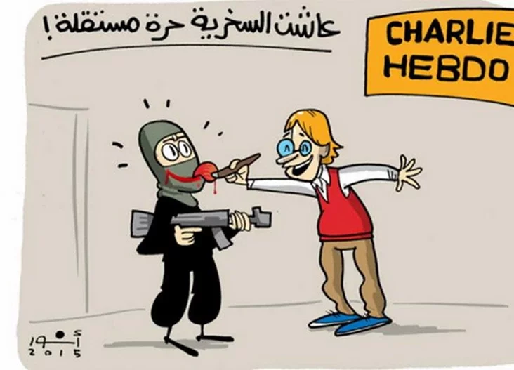Па інтэрнэце ходзяць разнастайныя падборкі амерыканскіх і еўрапейскіх карыкатур на тэму расстрэлу карыкатурыстаў часопісу Charlie Hebdo ў Парыжы. Адну з такіх перадрукоўвала і НН. Аднак не толькі еўрапейцы, але і арабы ушанавалі памяць забітых карыкатурыстаў.