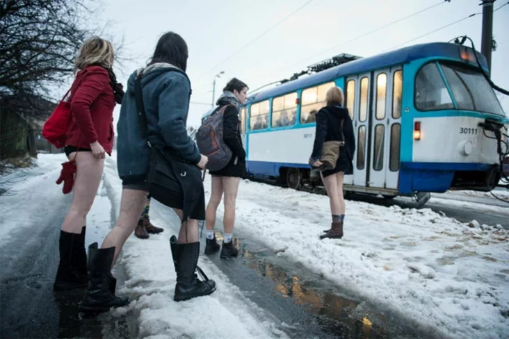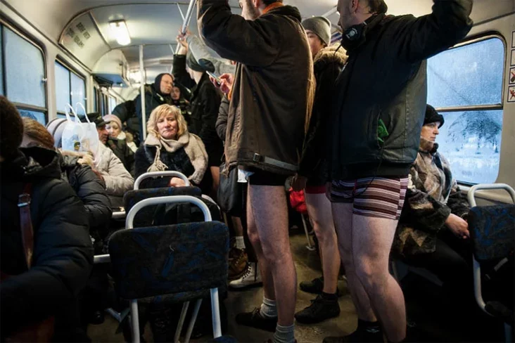 «11 студзеня ў рыжскім трамваі 7-га маршруту прайшла акцыя «Паездка без штаноў». Маладыя людзі прынялі ўдзел у адной з версій глабальнага мерапрыемства The No Pants Subway Ride.