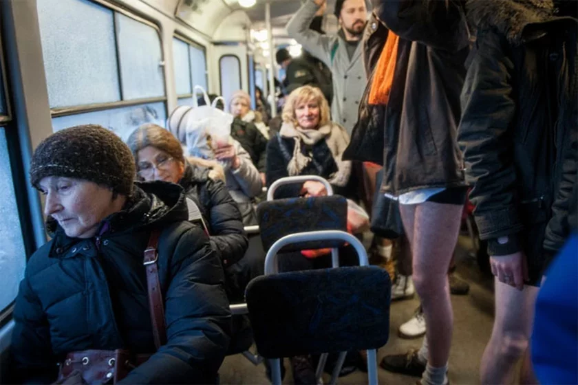 У нядзелю каля 30 чалавек распрануліся, каб праехацца на грамадскім транспарце без штаноў. The No Pants Subway Ride - штогадовае мерапрыемства, якое з 2012 года пачало праводзіць у Нью-Ёрку рух Improv Everywhere. Сёлета такія акцыі пройдуць у 60 гарадах свету.
