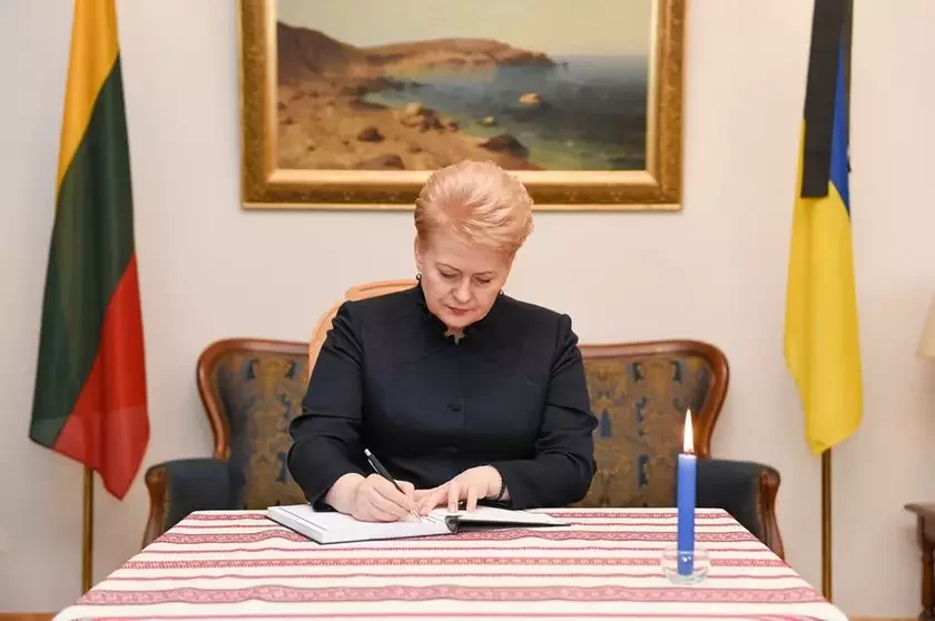 Прэзідэнтка Літвы Даля Грыбаўскайце выказала спачуванні Украіне ў сувязі з трагедыяй пад Валнавахай. Фота са старонкі Грыбаўскайце ў Фэйсбуку.