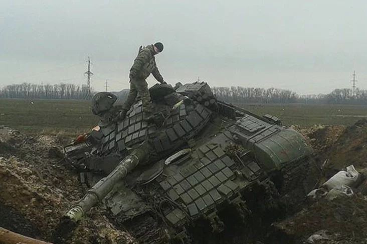 У сацыяльных сетках з'явіліся фота расейскіх танкаў, падбітых у зоне супрацьстаяння на Данбасе.