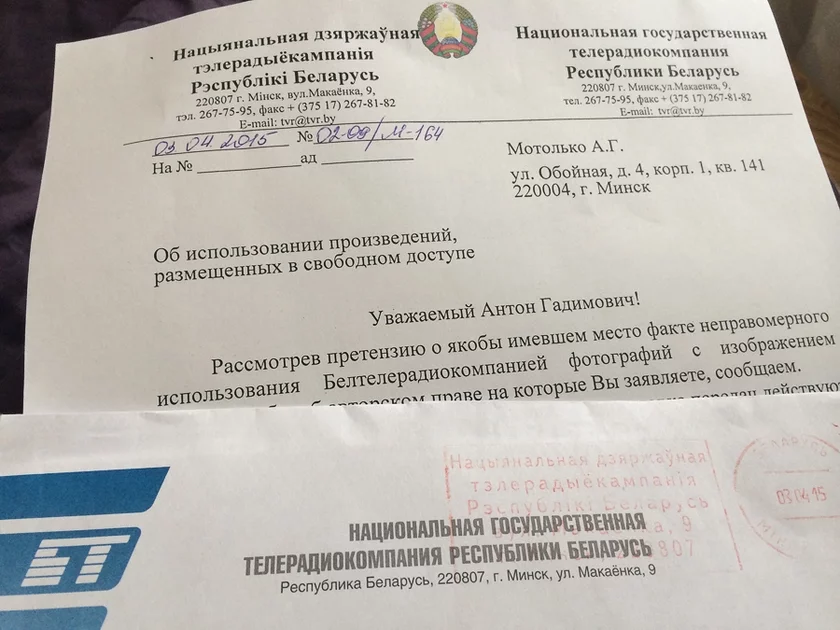 Фатограф Антон Матолька атрымаў адказ ад старшыні Нацыянальнай дзяржаўнай тэлерадыёкампаніі Генадзя Давыдзько адносна выкарыстання яго здымкаў.