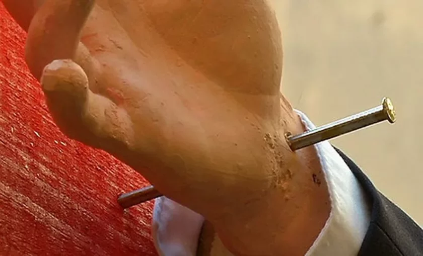 Арганізатары выставы «Дысідэнт» ў двары былога будынка КДБ у Рызе, дзе яны змясцілі інсталяцыю з распятай на крыжы фігурай, атрымалі пагрозы і вырашылі яе закрыць.