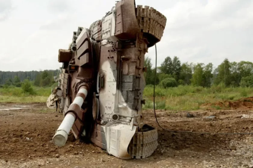 Падчас трэніроўкі 46-тонны расійскі танк Т-72 перавярнуўся на хуткасці 70 км/г. Шматтонная машына спачатку цалкам перакулілася, а пасля застыла на баку.