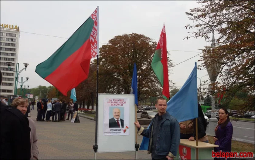 Побач з перадвыбарным пікетам Таццяны Караткевічам на праспекце Пераможцаў у Мінску цудоўным чынам апынуўся (у той жа час, у тым жа месцы) пікет у падтрымку кандыдата Аляксандра Лукашэнкі.