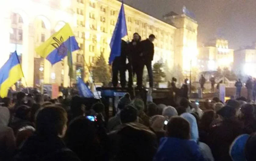 Сёння на сцэне Майдана Незалежнасці ў Кіеве павінны былі выступіць 15 маладых музычных калектываў з нагоды гадавіны Дня годнасці і свабоды. Канцэрт доўжыўся каля 20 хвілін, пасля чаго канцэрт практычна ператварыўся ў мітынг на Майдане.