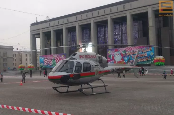Верталёт МНС Беларусі «Еўракоптэр» прызямліўся ў цэнтры Мінска на Кастрычніцкай плошчы, паведаміў прэс-сакратар МНС Віталь Навіцкі.