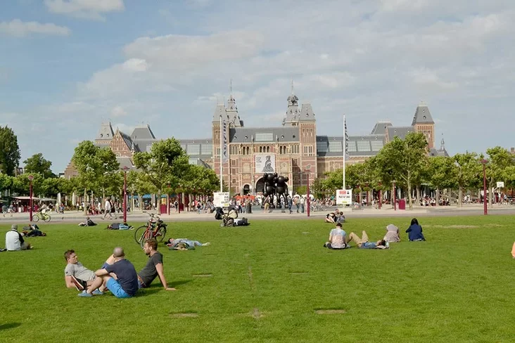 Музейны квартал у Амстэрдаме — гэта не толькі некалькі буйных музеяў (апроч Рэйксмузеум, таксама Стэдэлійк і музей Ван Гога), але і пляц Музеумплэйн, дзе на зялёнай траўцы збіраецца мноства моладзі, паляць траўку, п’юць віно, гуляюць у футбол і г.д.