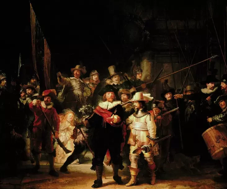 Зразумела ж, адна з найбольш знакамітых карцін у гісторыі жывапісу, ды і з поўным правам. Побач вісяць калегі па жанры, групавыя партрэты розных гільдый, на якіх мастакі «залатога веку» зараблялі велізарныя ганарары, і параўнанне якраз дэманструе геніяльнасць і інавацыйнасць Рэмбранта, тут табе і фантастычная кампазіцыя (асабліва як для такога традыцыйнага жанру), і дынаміка фігур, вартавыя вось-вось выберуцца з палатна ды навядуць шораху сярод турыстаў, а то няма каму ўжо за парадкам сачыць.
