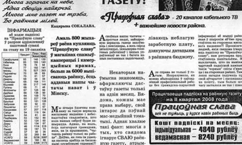 Гэткім чынам выданне мясцовага райвыканкама імкнецца заахвоціць да падпіскі сваіх патэнцыйных чытачоў. «Прозвішчы людзей, якія свядома ігнаруюць падпіску на «Працоўную славу«, нам рэгулярна прадстаўляюць паштальёны», — папярэджвае газета.