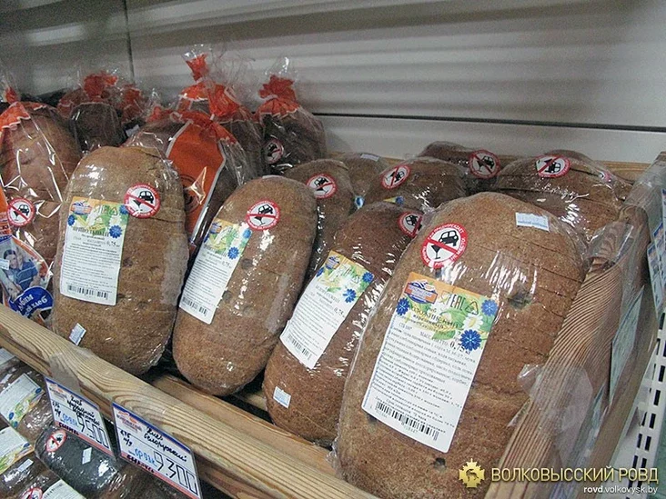 У Ваўкавыску Гродзенскай вобласці на боханах хлеба размясцілі заклік не піць за рулём, паведамляе афіцыйны сайт Ваўкавыскага РАУС.
