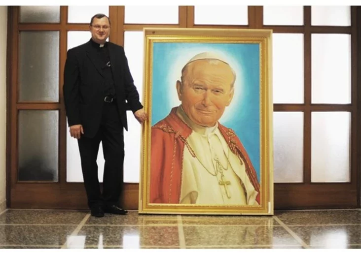 Абраз быў добраславёны ў дзень нараджэння святога Яна Паўла II, якому сёння споўнілася б 96 гадоў. Абраз напісала італьянская мастачка Анна Тэдальдэрычоне. Ён уяўляе сабой дакладную копію кананізацыйнага абраза былога пантыфіка.