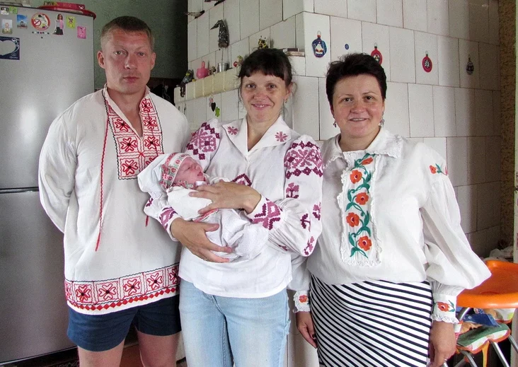 У вёсцы Каменка вышыванку ўручылі нованароджанай Валянціне Алісеенка. Дзяўчынка нарадзілася 13 чэрвеня ў Бабруйскай радзільні.