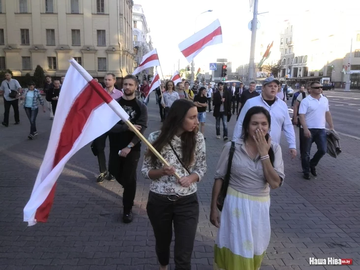 Удзельнікі рушылі на праспект Незалежнасці. У суправаджэнні, вядома — міліцыянты і людзі ў цывільным, якія здымаюць усё на відэа.