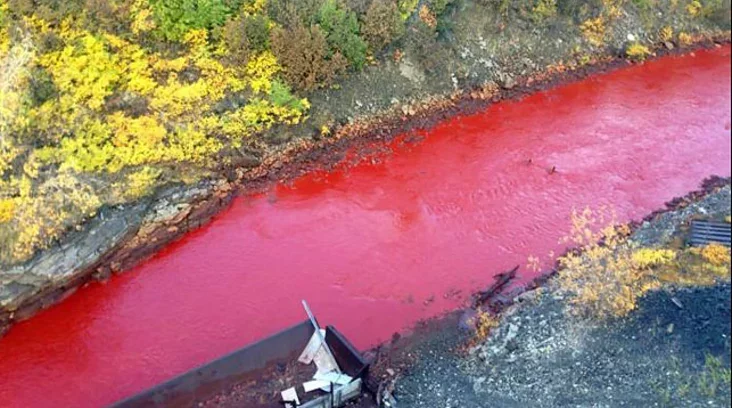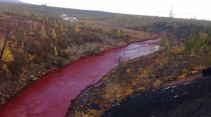 Жыхары Нарыльска (РФ) выкладваюць у інтэрнэце фатаграфіі мясцовай ракі Далдыкан, якая раптам афарбавалася ў ярка-чырвоны колер, паведамляюць інфармагенцтвы.