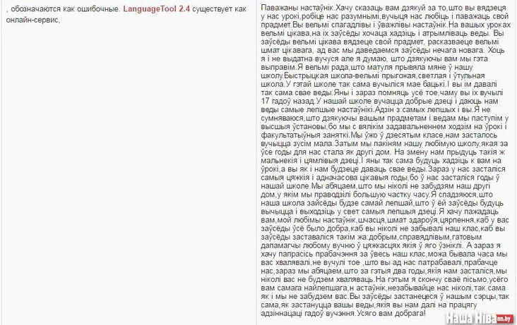 На рэдкасць мілы ліст выпадкова трапіў у Нашу Ніву: Дзесяцікласніца пісала настаўніку і памылкова загрузіла тэкст у опцыю «Праверыць арфаграфію» на сайце НН