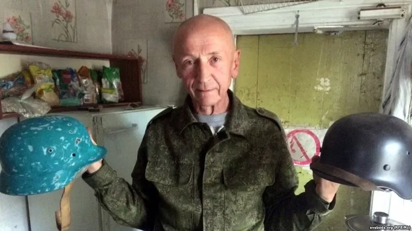 Я ж калекцыянэр. У мяне тут штык-шпага была 1890 году. А гэтыя забралі ў Менск — кажуць, на экспэртызу. І акопны ножык быў, больш позьняга пэрыяду. Вучэбную супрацьтанкавую міну — я яе тут, пад Барысавам знайшоў, — таксама забралі. Форму забралі, дакумэнты — казацкі білет і вайсковы білет арміі «ЛНР».