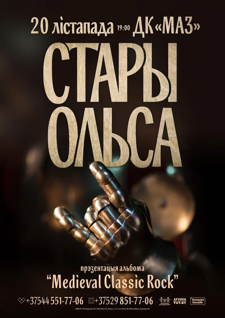 20 лістапада пасля працяглых гастроляў за мяжой гурт «Стары Ольса» нарэшце прэзентуе новую праграму «Medieval Classic Rock» для ўлюбёнай айчыннай публікі. Беларускія прыхільнікі за час адсутнасці калектыву паспелі засумаваць па непаўторным духу Сярэднявечча: за пару дзён да канцэрта засталося менш за 200 квіткоў!