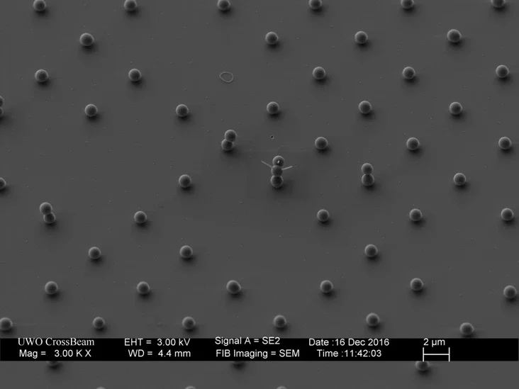 Фігурку з трох шарападобных часціц дыяксіду крэмнія агульнай вышынёй менш за тры мікроны стварылі навукоўцы з Універсітэта Заходняга Антарыё.