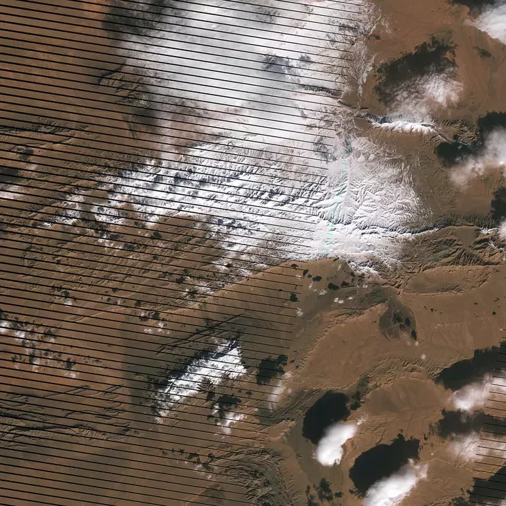 У Сахары 19 снежня выпаў снег — упершыню за 37 гадоў. Ён растаў на наступны дзень, але заснежаную пустыню паспеў сфатаграфаваць спадарожнік Landsat 7.