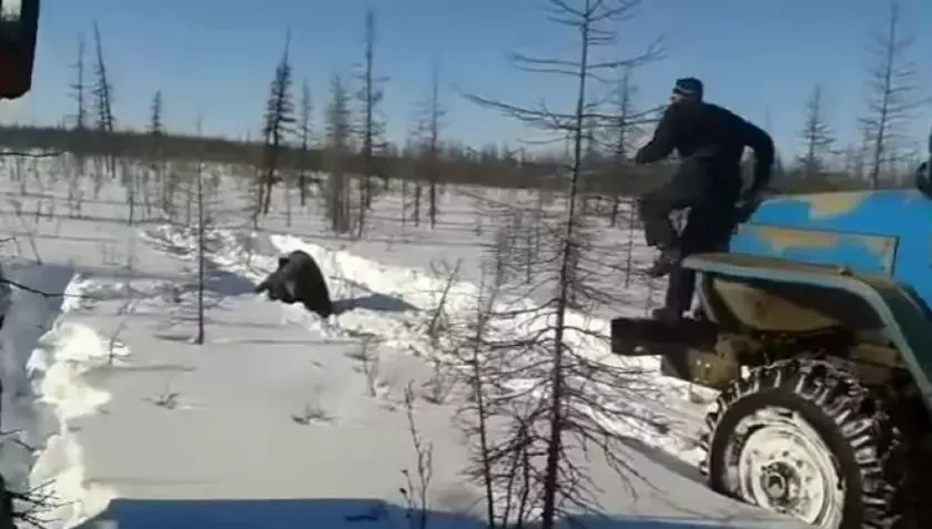 На кадрах відаць, як кіроўца «Урала» пад ухвальныя воклічы з кабіны некалькі разоў пераязджае мядзведзя, але жывёла не здаецца. Потым другі «Урал» пад'язджае і прыціскае мядзведзя да зямлі. Жывёла адчайна спрабуе выбрацца з-пад колаў, але яго дабіваюць ударамі лому па галаве, апісвае NewsYkt.ru.