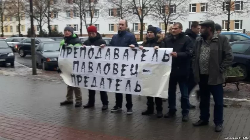 9 снежня дзясятак сяброў «Альтэрнатывы» прыйшлі да галоўнага корпуса БДУІР у Мінску з расцяжкай «Выкладчык Паўлавец — здраднік!». Такім чынам актывісты выказалі сваё стаўленьне да аўтара правакацыйных артыкулаў на сайце «Рэгнум».