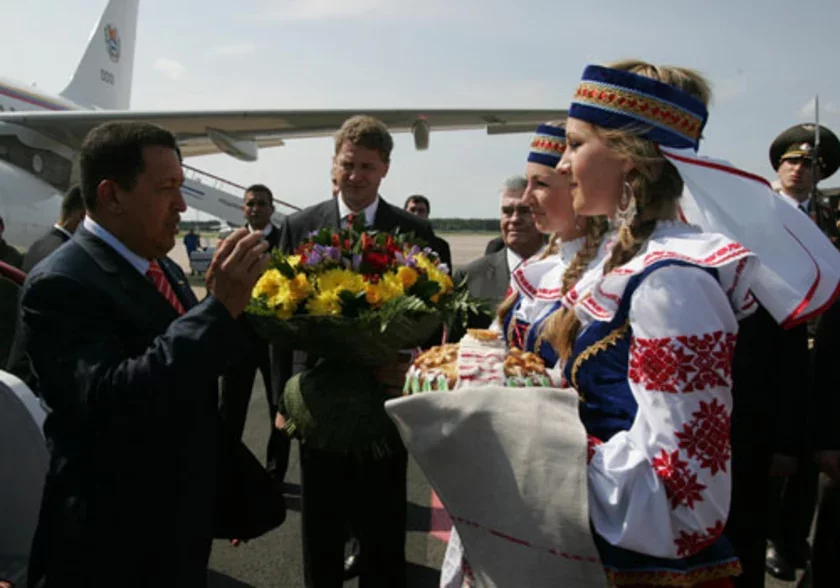 Уга Чавэс прыехаў з аднадзённым візытам, пралётам з Масквы. Гэта трэці прыезд вэнэсуэльскага лідэра ў Беларусь.