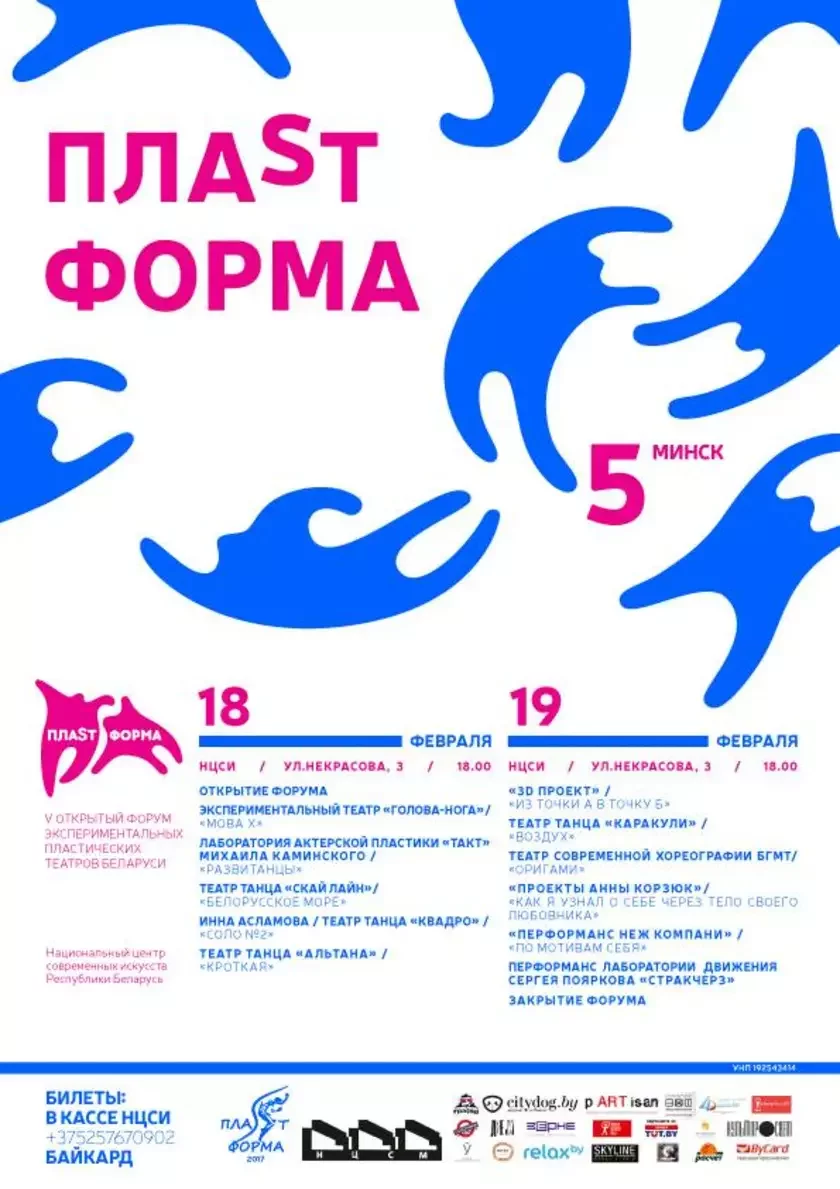Гледачы змогуць стаць сведкамі дзеянняў у розных жанрах: ад сучаснага танцу да інтэрактыўных перформансаў. Сярод удзельнікаў форума — тэатры танца «Quadro» (Гомель), «Галерэя» (Гродна), «Альтана» (Мінск) і іншыя. Галоўным экспертам будзе Рышард Каліноўскі — танцор, харэограф Цэнтра культуры Любліна з Польшчы.