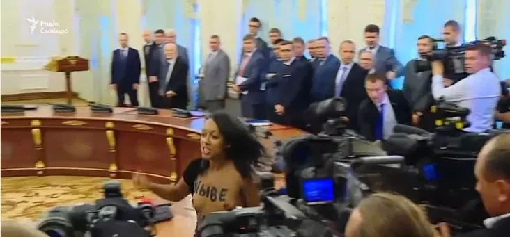 У Кіеве перад Лукашэнкам з крыкамі «Жыве Беларусь!» выскачыла аголеная актывістка ФОТА, ВІДЭА