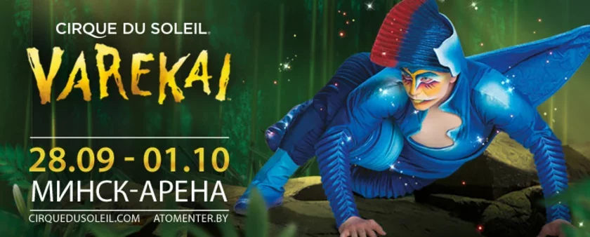 Самая папулярная цыркавая трупа ў свеце — Cirque du Soleil — упершыню пакажа ў Беларусі пастаноўку Varekai, якую ўбачыла больш за 10 млн чалавек па ўсім свеце. З 28 верасня па 1 кастрычніка ў «Мінск-Арэне» пройдзе 6 паказаў. Квіткі ўжо ў продажы! Дзецям да 5-ці гадоў уваход бясплатны без прадастаўлення месца.