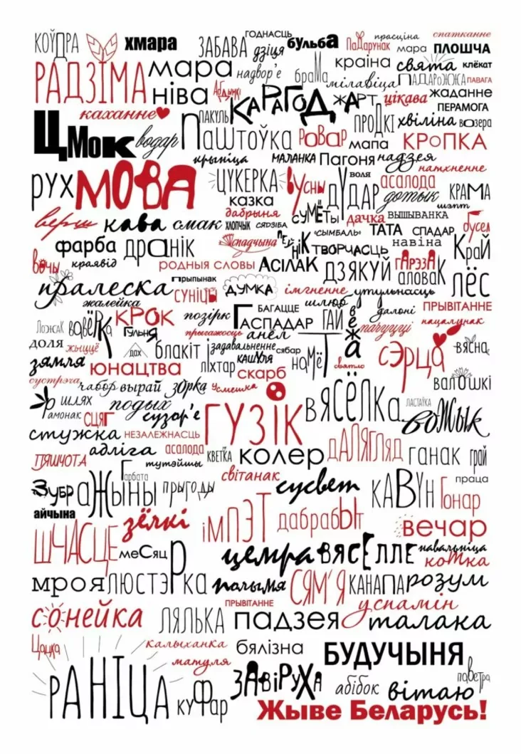 У дызайне выкарыстана 200 словаў беларускай мовы, што былі прапанаваныя падпісантамі суполак Symbal.by ў сацыяльных сетках.