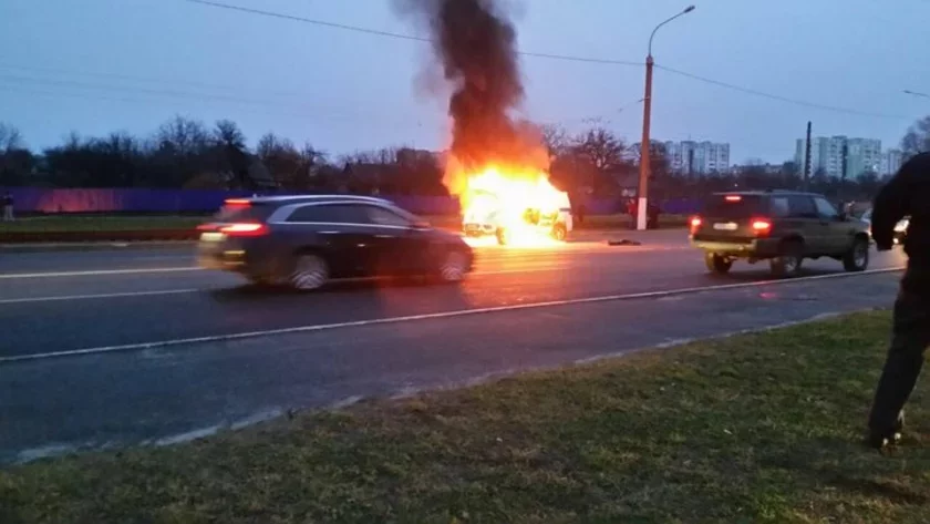 На зваротным шляху ў міліцэйскі ўчастак мужчына папрасіў, каб яму дазволілі папіць вады. Ён дастаў з сумкі бутэльку з-пад мінералкі, аднак у ёй была не вада, а лёгкаўзгаральная вадкасць. Ён разліў яе на машыну і падпаліў. Аўтамабіль загарэўся. Агонь пашкодзіў значную частку кузава і салона, рэчы ў ім. Сам затрыманы атрымаў апёкі.