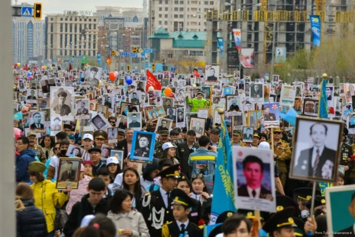 Вельмі маштабна «Несмяротны полк» прайшоў у Астане. Ад 15 да 30 тысяч чалавек выйшлі на вуліцы казахстанскай сталіцы. Вышэйшае кіраўніцтва Казахстана не ўзяло ўдзел у «Палку», але больш дробныя чыноўнікі, як намеснік акіма Астаны ці намеснік генпракурора выйшлі з партрэтамі родных. У Алматы сабралася яшчэ больш — каля 70 тысяч.