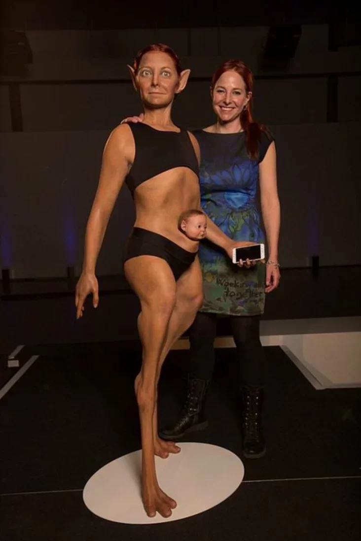 Даследчыца выбрала найлепшыя вынаходкі прыроды, якія маглі б згладзіць «недасканалы» дызайн чалавека. Для гэтага яна сабрала самыя ўдалыя, на яе погляд, прыстасаванні жывёльнага царства і стварыла постаць «дзіўнай новай» сябе. Падрабязныя вынікі пакажуць у дакументальным фільме на брытанскім тэлеканале BBC4, а першай фатаграфіяй антраполаг падзялілася ў сваім твітары.