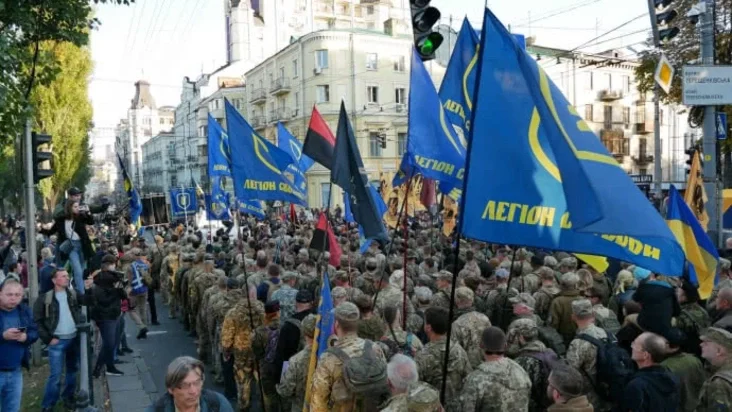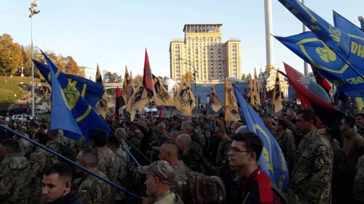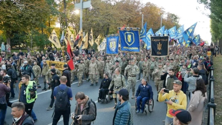 Марш нацыяналістаў у гонар Дня абаронцы Айчыны у нядзелю сабраў у Кіеве каля 15 тысяч удзельнікаў, паведамляе «Українська правда».