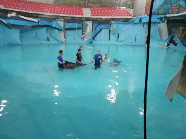 Ратавальнікі правялі аперацыю па выратаванні дэльфінаў, якія пацярпелі ў выніку разгерметызацыі басейна ў дэльфінарыі «Акварэль» у Алушце. Спецыялісты адпампавалі ваду і перанеслі двух дэльфінаў у бяспечную зону.
