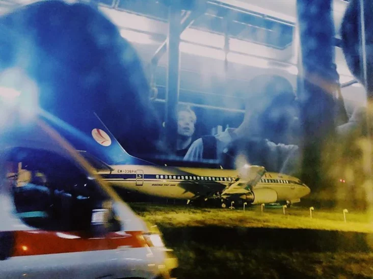 «Мінск—Кіеў. Самалёт Belavia ў Жулянах вылецеў з узлётна-пасадачнай паласы ў поле (наколькі разумею, палосы тут досыць разбітыя). Пілот паспеў затармазіць, каб не заехаць у агароджы. Але ліхтары на полі ўсё-такі крыху памялі», — напісала пасажырка самалёта Kasia Syramalot.