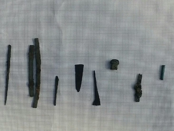 Закладзены раскоп на плошчы 80 кв. м дазволіў археолагам знайсці прадметы, якія адлюстроўваюць бытавую культуру плямёнаў балтаў. Сярод знаходак — рыбалоўныя гаплікі, нажы, шылы, сякеры, прасніца, прадметы ўзбраення і інш. Выяўлены таксама ўпрыгажэнні з жалеза і бронзы. Гэта бранзалеты, шпількі, бляшкі, пранізкі.