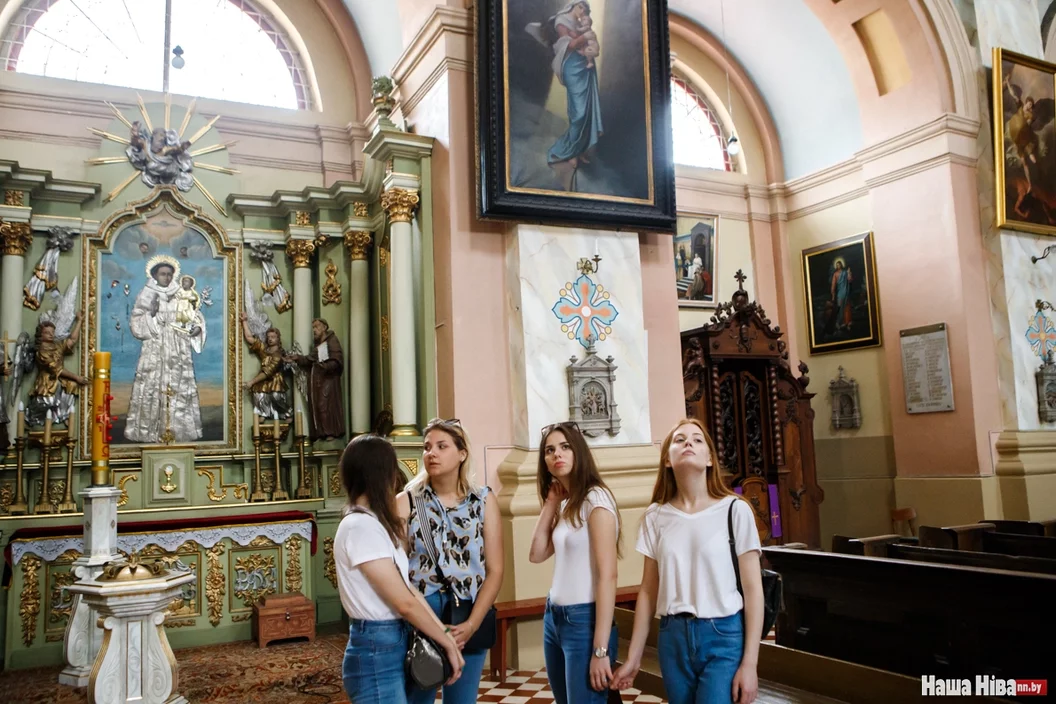 Разглядаць амбон, балдахін над якім, магчыма, зроблены з цэльнага кавалка дрэва, самы стары абраз XVI ст., арган, аднаўленне якога фундаваў заснавальнік партала Tut.by Юры Зісер.