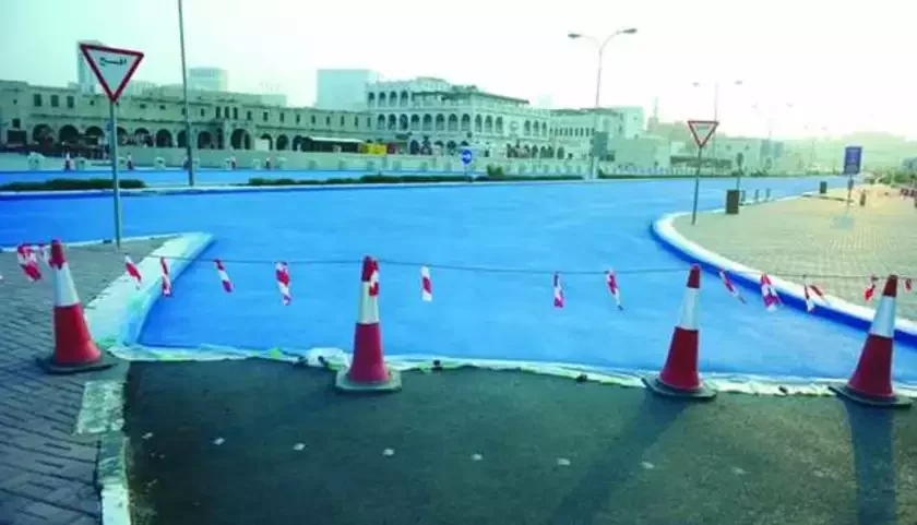 У сталіцы Катара пачалі фарбаваць дарогі ў блакітны колер. Навошта яны гэта робяць? ФОТА