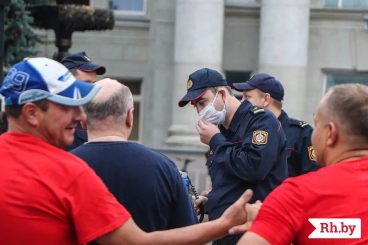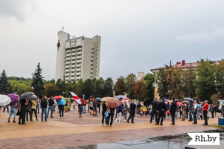 Потым да натоўпу выйшлі два дзясяткі міліцыянераў, яны абышлі ўсю плошчу, а людзі пайшлі ў розныя бакі — да рынку, на Вялікі Гасцінец і да гасцініцы. Па плошчы праходзілі людзі з бел-чырвона-белымі сцягамі, але міліцыянеры не падыходзілі да іх і не затрымлівалі.